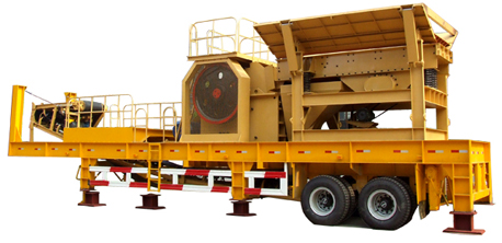 物料經(jīng)給料機(jī)均勻輸送到破碎機(jī)內(nèi),鄂式破碎機(jī)作初步破碎后,通過圓振動(dòng)篩構(gòu)成閉路系統(tǒng),實(shí)現(xiàn)物料的循環(huán)破碎,成品物料由輸送機(jī)輸出,進(jìn)行連續(xù)破碎作業(yè)。輪胎顎破移動(dòng)破碎站可以根據(jù)實(shí)際生產(chǎn)需要去除圓振動(dòng)篩,實(shí)現(xiàn)對(duì)物料直接進(jìn)行初步破碎,與其他破碎設(shè)備配套使用操作方便、靈活。